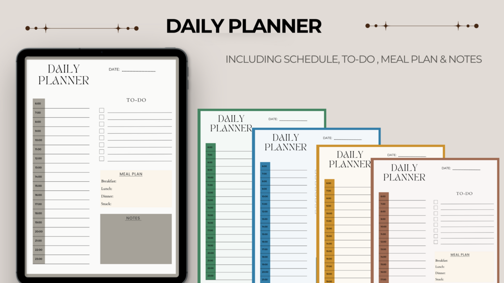 Digital Daily Planner with Schedule, To-Do, Meal Plan & Notes